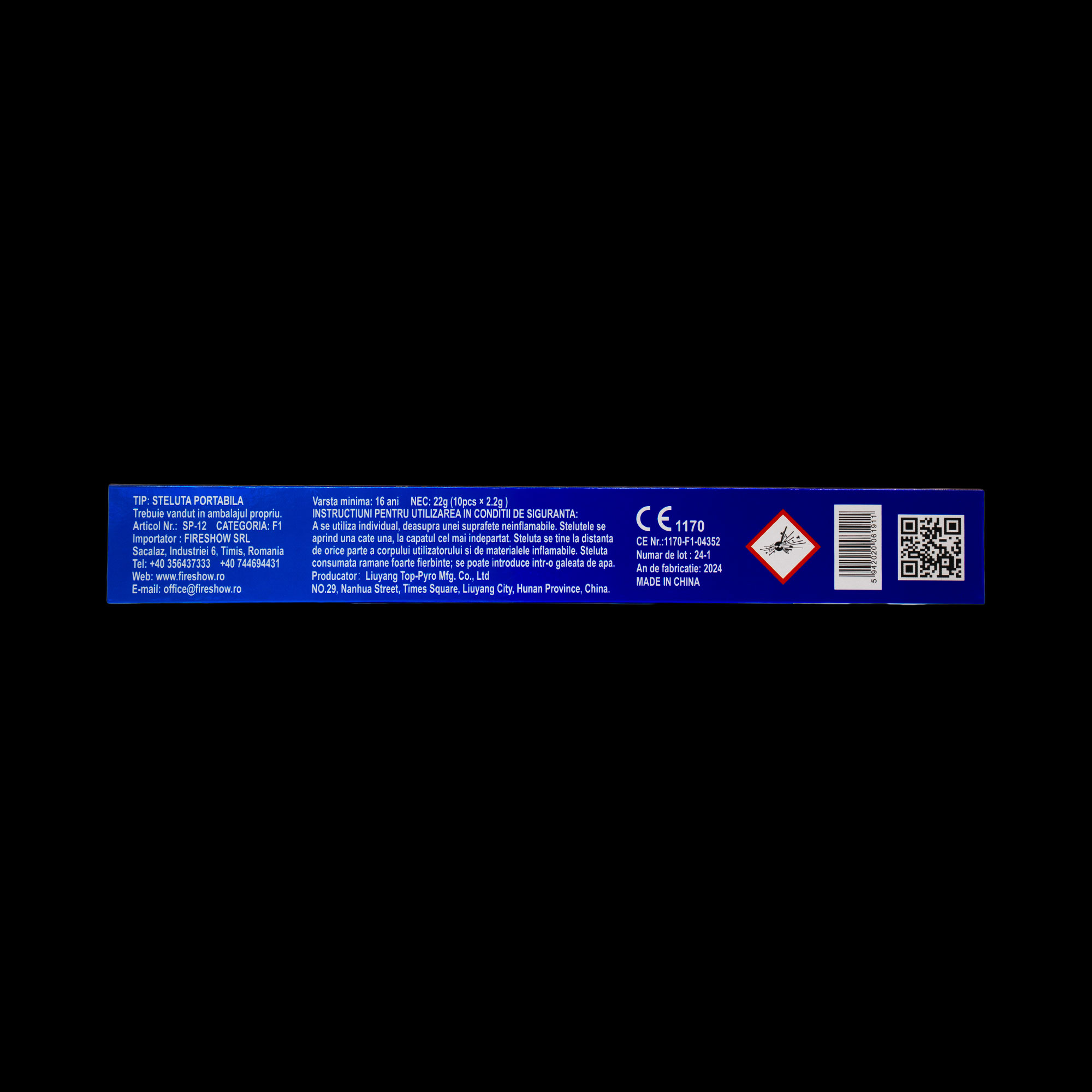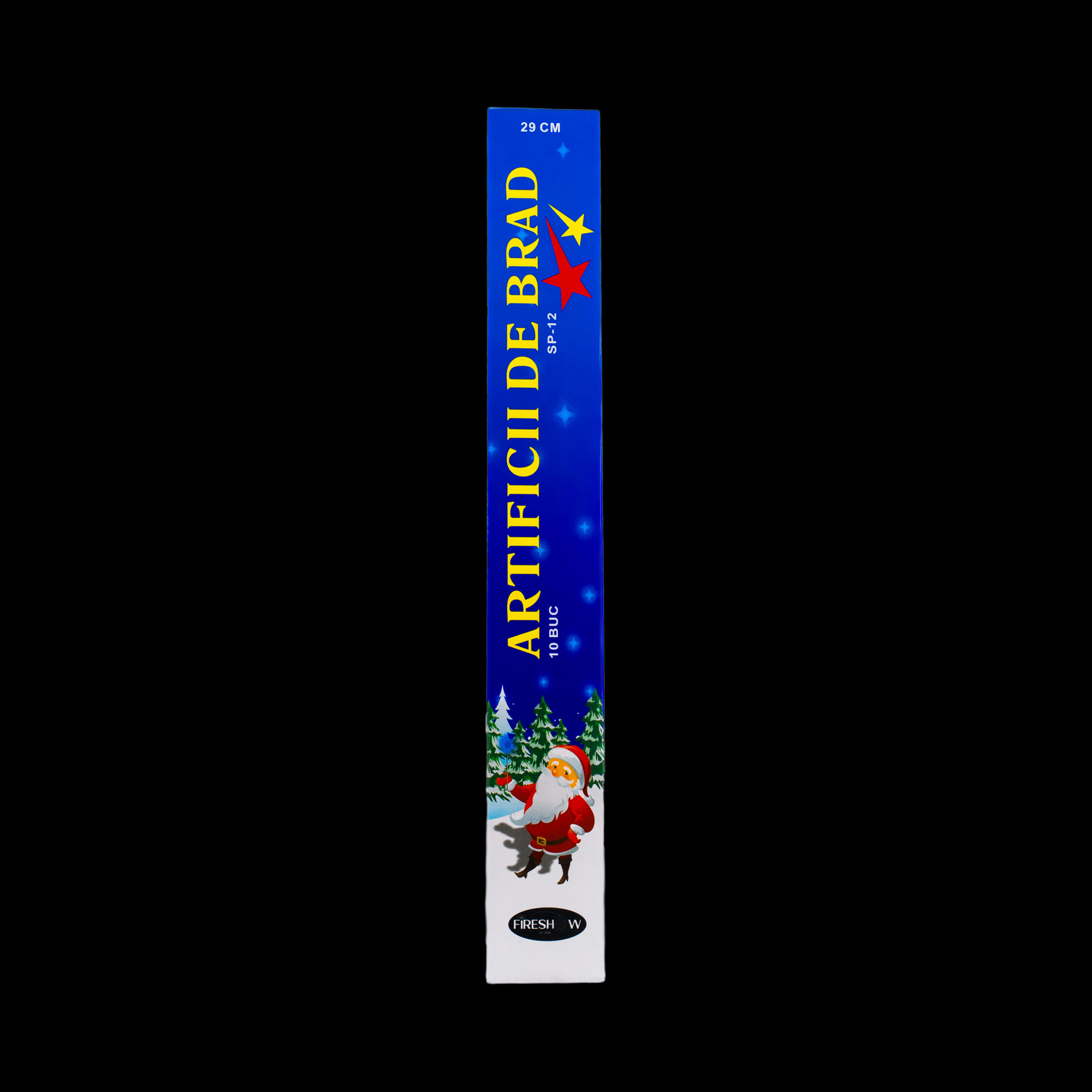 Acest set contine 10 artificii de brad de 29 cm, fiecare fiind realizat pentru a oferi un efect luminos si spectaculos. Artificiile sunt usor de utilizat si pot fi integrate cu usurinta in decorul de Craciun, fie ca este vorba despre un brad natural sau un brad artificial. Scanteile aurii produse de artificii creeaza o atmosfera calda si festiva, perfecta pentru a sarbatori Craciunul alaturi de familie si prieteni.
